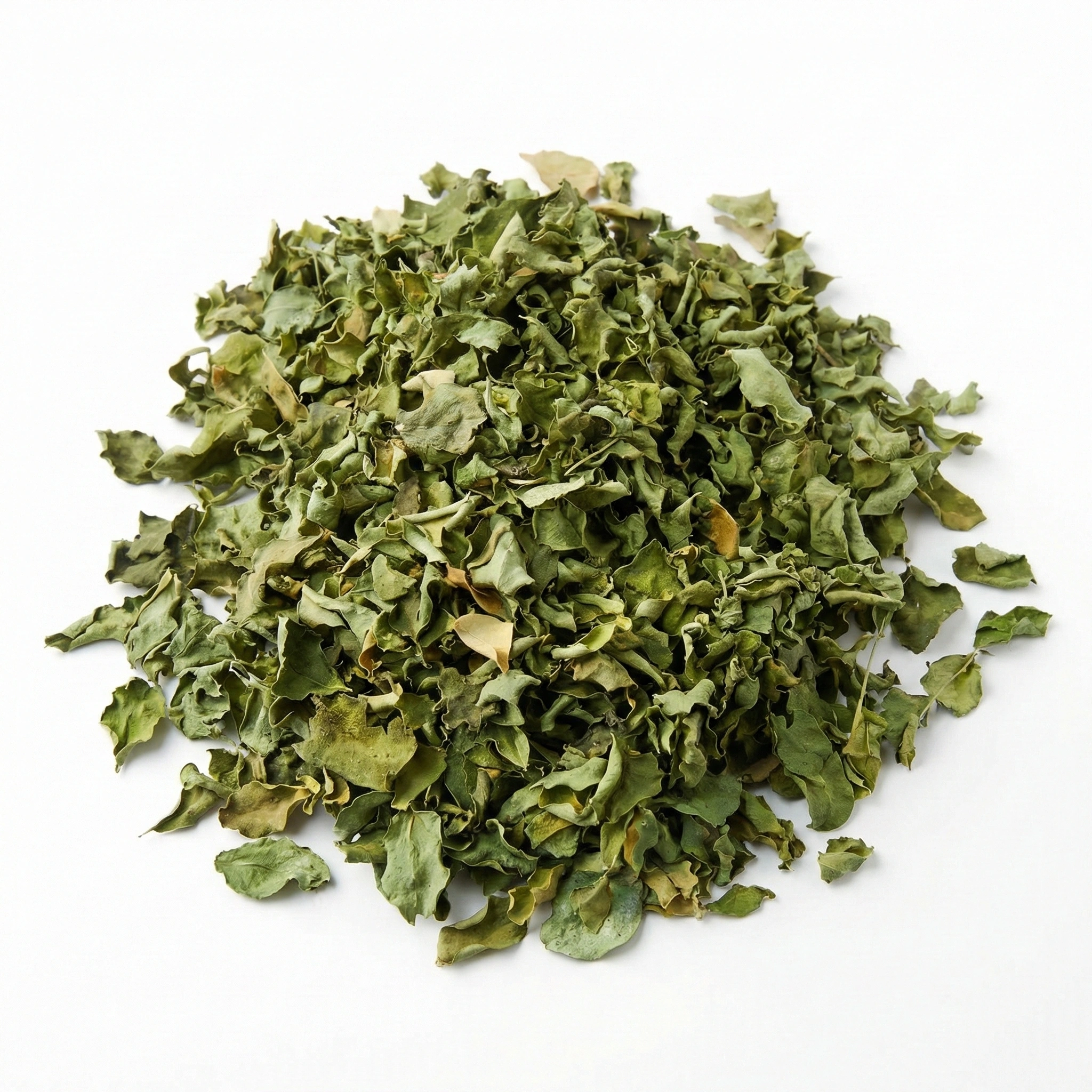Dried leaves of Moringa oleifera, often called the "miracle tree" for its exceptional nutritional profile