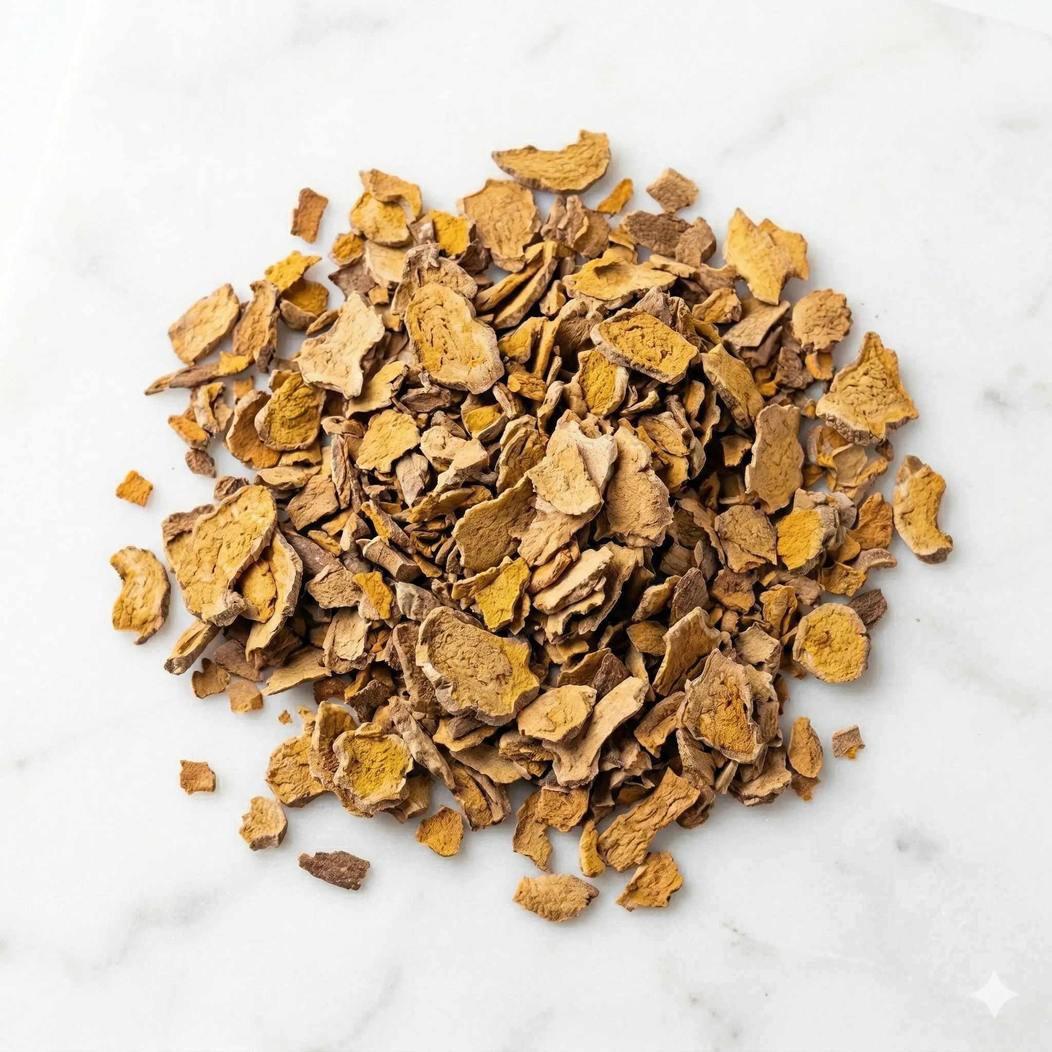 Premium dried turmeric slices made from fresh, mature turmeric rhizomes (Curcuma longa)